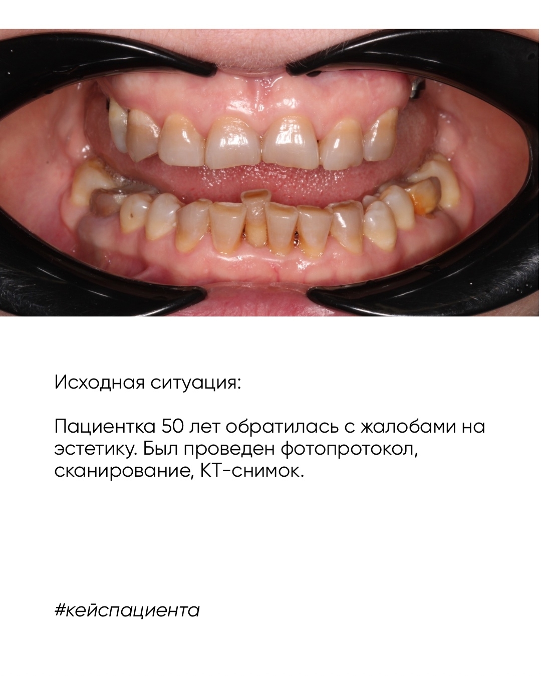 На первом этапе был выполнен полный диагностический протокол: фотопротокол внутриротовое сканирование КТ-исследование