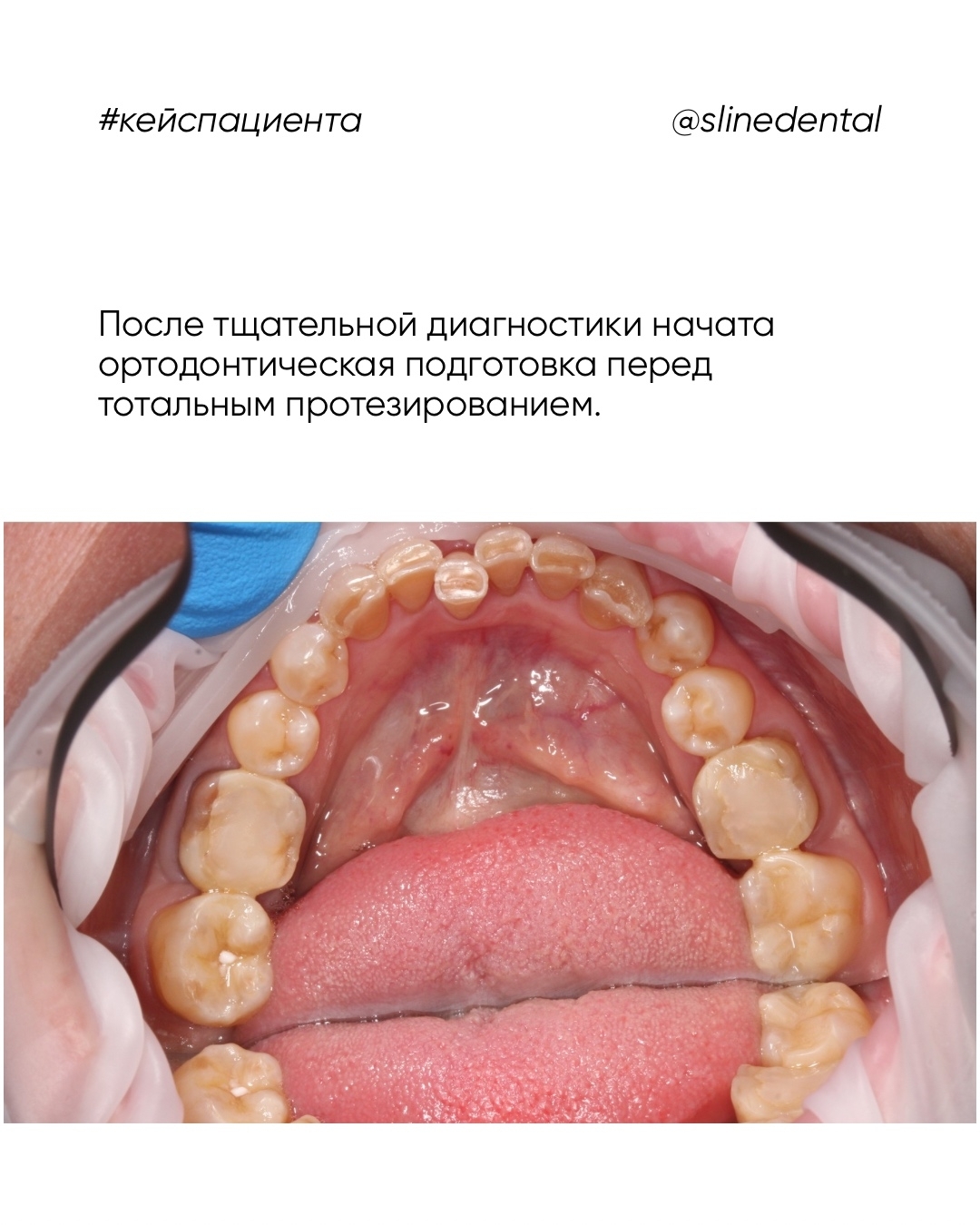 После тщательной диагностики принято решение о проведении ортодонтической подготовки перед тотальным протезированием.