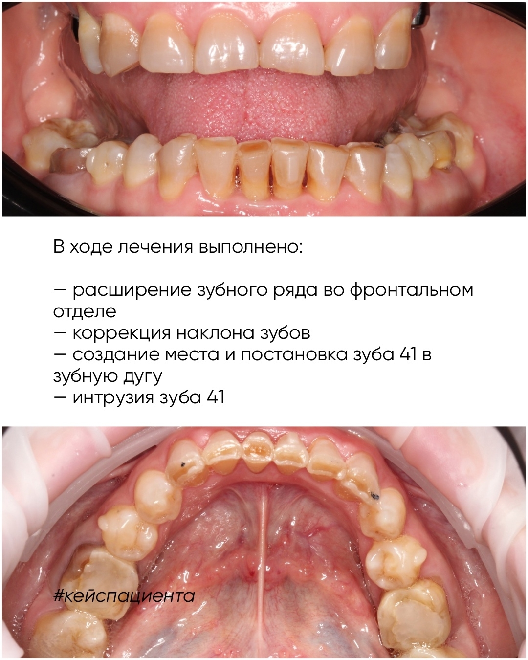 На 4 фото результат экструзии зубов за 6 месяцев.
